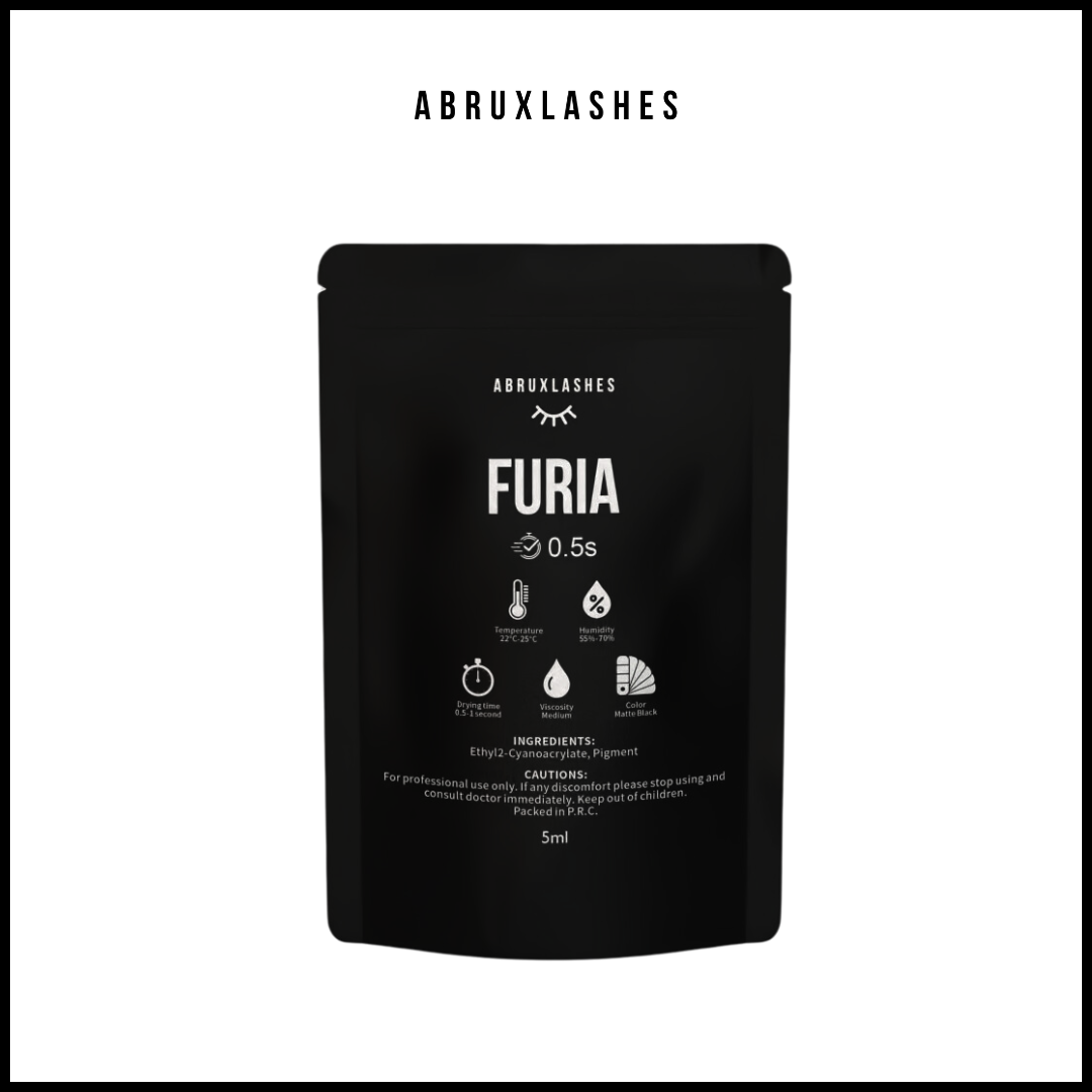 Furia Adhesive from abruxlashes, designed for lash artists seeking precision and speed in application, delivering strong hold and long-lasting durability.