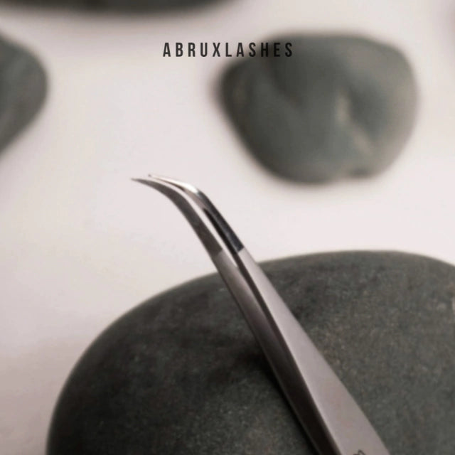 A reliable tool for isolating natural lashes, offering precision and comfort with a short semi-curved design.
